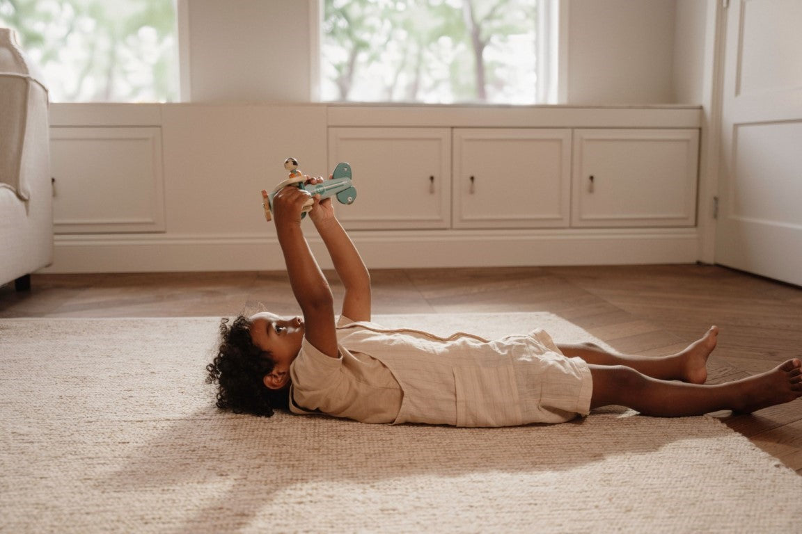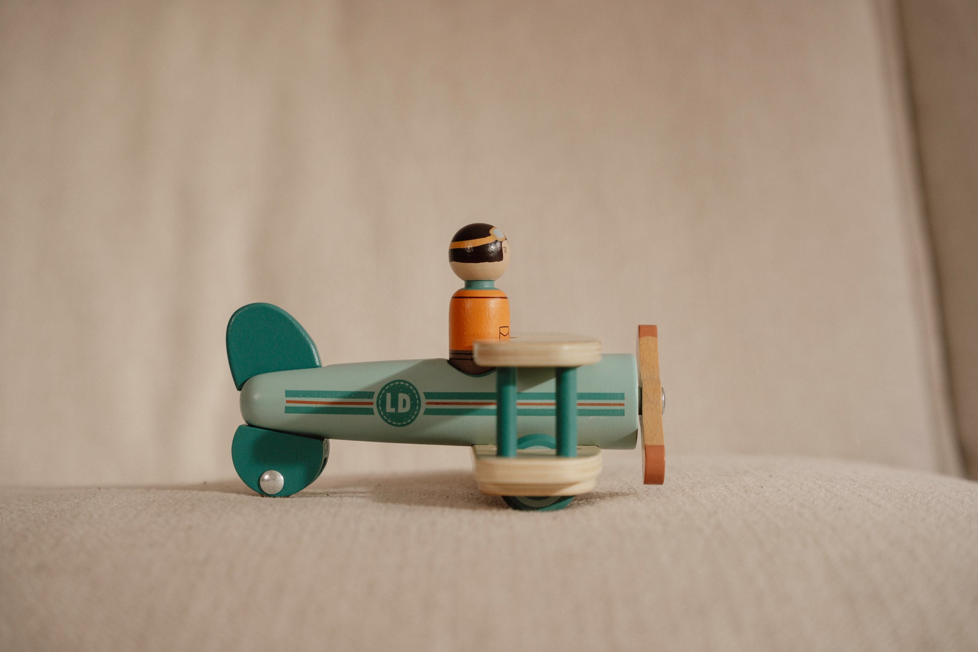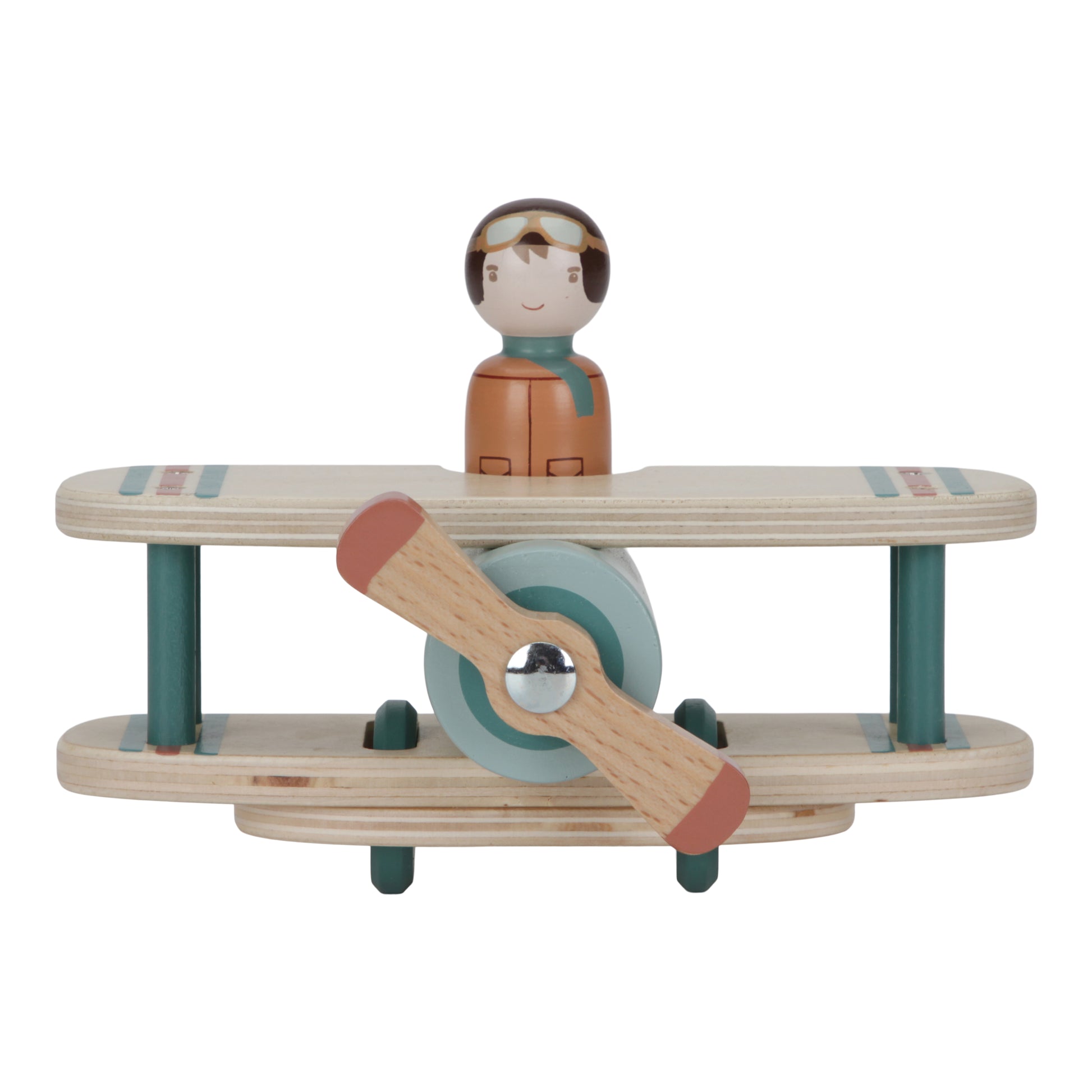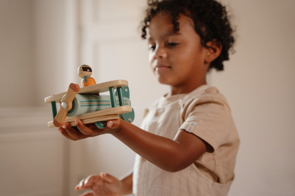 Ready for takeoff! You’re the pilot in command, so start the engine, spin the propeller and let’s go on an adventure. This toy plane is designed for interactive and imaginative play. The smooth-gliding wheels allow your little one to explore new territories on the ground effortlessly. The removable pilot figure is compatible with other toy sets, such as the RV and school bus. Let your child’s imagination soar with this cute wooden toy plane.
