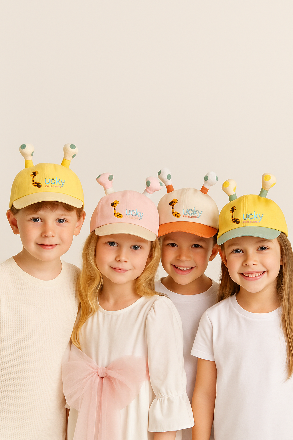 Make sunny days even happier with our “Giraffe Good Luck” children’s hats! With an exclusive and playful design, these caps combine protection, comfort and fun in one accessory.