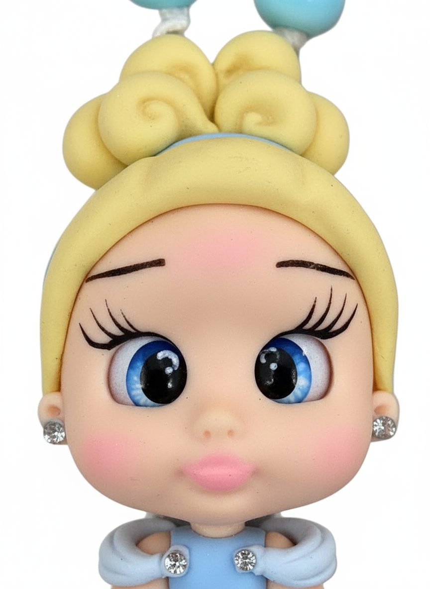 Handcrafted from polymer clay , this necklace captures the sweetness of Cinderella in a pendant full of details—a blue dress, delicate bows, and a pumpkin that heralds enchantment. Light and soft to the touch, it fits comfortably around a girl's neck without weighing her down. The assorted beads combine glitter and pastel shades, creating a luminous effect that complements both party outfits and everyday wear. A durable, tender accessory designed to create a lasting collection of happy memories.