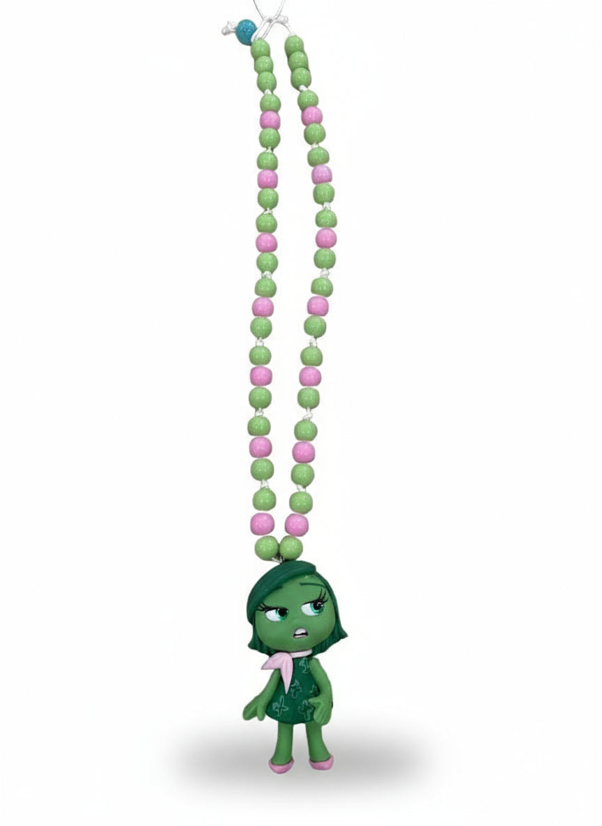 Made from handcrafted polymer clay , this necklace celebrates the Inside Out universe with a detailed pendant featuring the characters (Joy, Disgust, and others). Lightweight and comfortable , it combines assorted sparkling beads in soft colors, creating a charming accessory that complements party outfits and everyday wear. Careful finishing and delicate shine ensure tenderness and fantasy in every step.