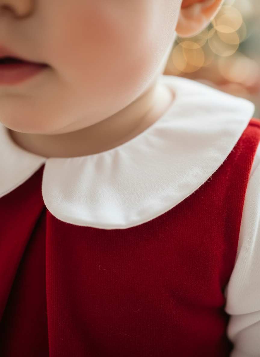 O Fofo de Veludo Vermelho do Atelier Hábitos de Geração é uma peça intemporal, pensada para envolver o bebé em conforto e elegância. Confeccionado em veludo suave e macio, destaca-se pelo seu toque delicado e acabamento requintado, perfeito para momentos especiais. O gola branca redonda adiciona contraste e charme, realçando o tom profundo e quente do veludo. Com fecho prático nas costas e entrepernas, assegura facilidade na troca e um ajuste perfeito.
