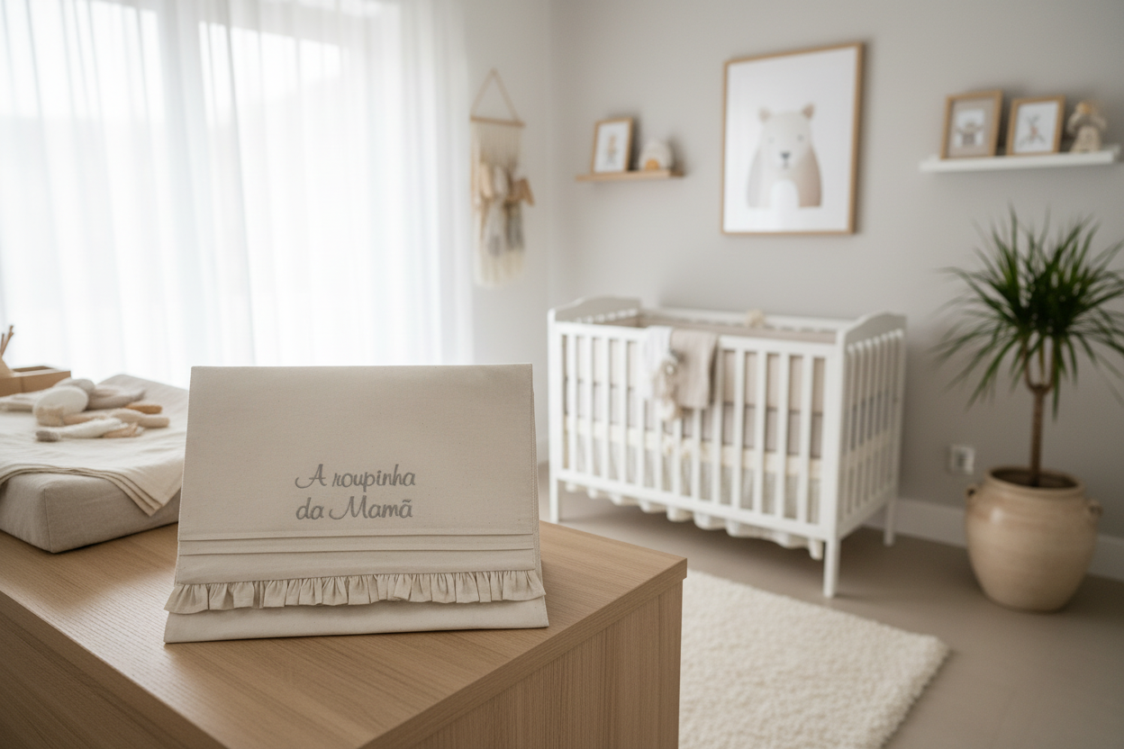 O Saco de Maternidade “Roupa da Mamã” foi criado para guardar com carinho as peças essenciais da mãe num dos momentos mais especiais. Confeccionado em tecido resistente e de toque suave, alia funcionalidade a uma estética delicada e intemporal. O acabamento com folho subtil e a inscrição bordada acrescentam um toque emocional e elegante, refletindo o cuidado artesanal do Atelier HG. Um saco pensado para organizar com beleza e significado.