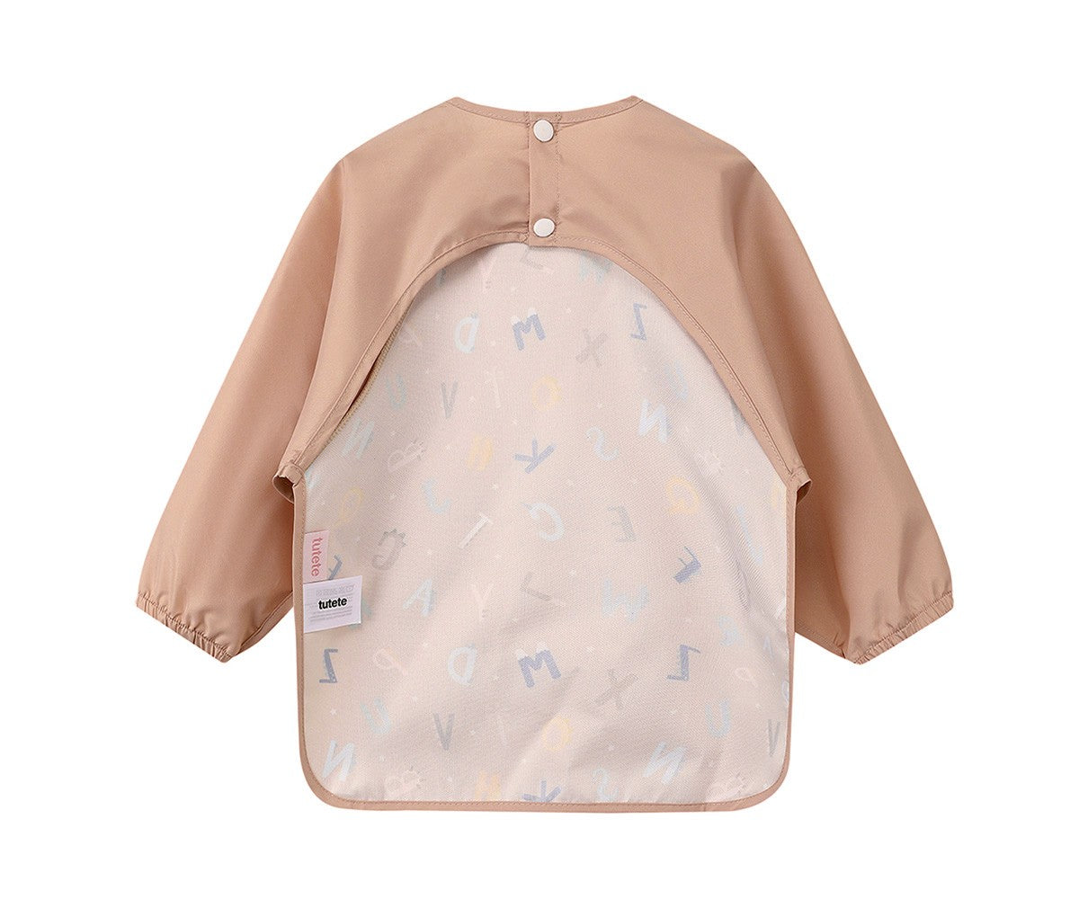 Fabriqué en polyester avec une finition déperlante, il empêche les résidus alimentaires de s'infiltrer, gardant ainsi les vêtements propres toute la journée. Sa coupe à manches longues couvre entièrement les bras et la poitrine, prévenant ainsi les taches et facilitant le quotidien, à la maison comme à la crèche.