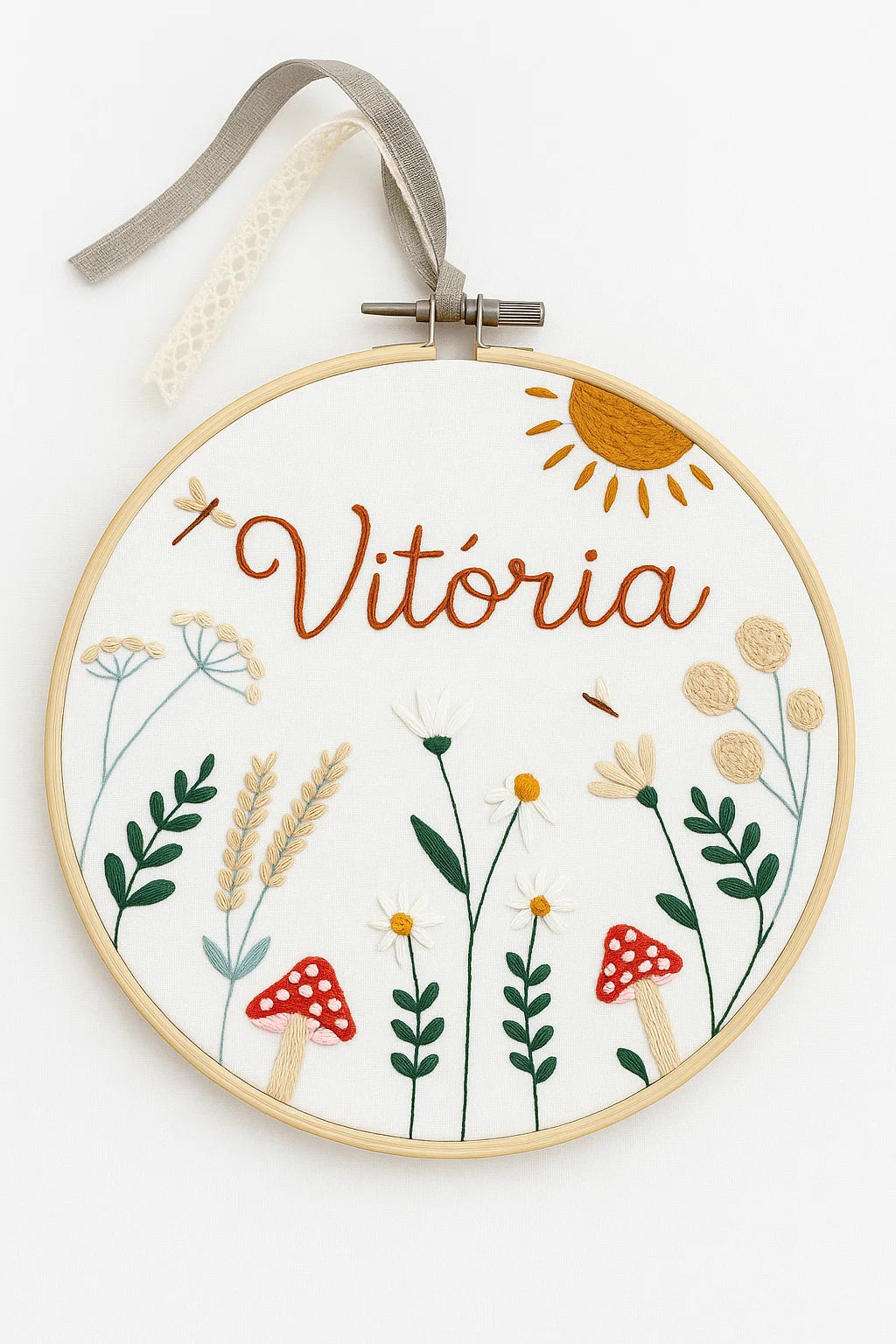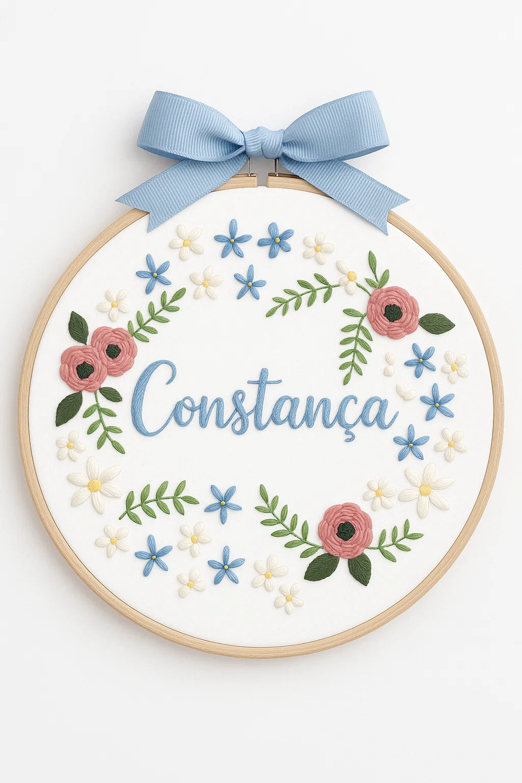Ce délicat cadre à broder de 25 cm, brodé à la machine au nom de l'enfant, est idéal pour décorer la chambre des plus petits d'une touche unique et spéciale. Un objet personnalisé alliant charme et tendresse, idéal également comme cadeau de naissance, de baptême ou d'anniversaire.