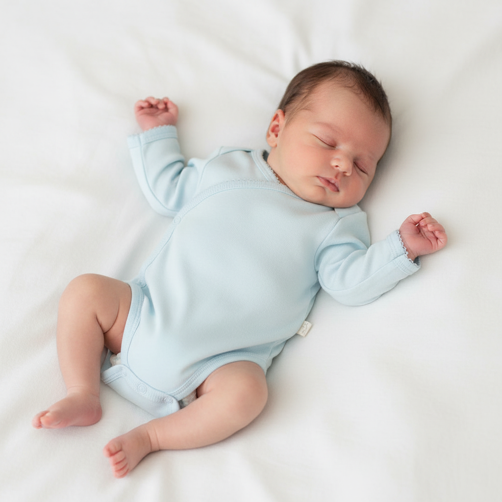 Ce body croisé en coton ultra-doux est une touche classique alliant beauté et confort. Sa fermeture boutonnée sur le côté facilite le change, idéal pour les nouveau-nés.