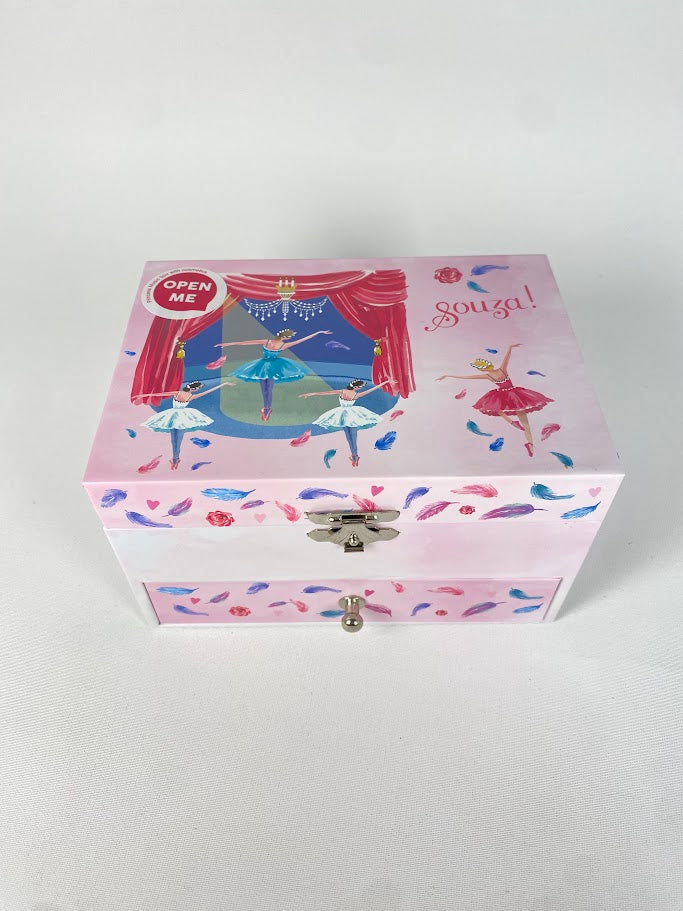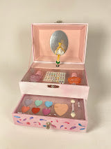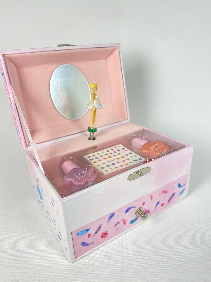 A caixa de joias musical da Souza é um verdadeiro tesouro para pequenas sonhadoras. Inspirada na elegância do ballet clássico, esta caixa revela uma bailarina graciosa que dança ao som do Lago dos Cisnes, guardando no seu interior um conjunto de maquilhagem completo com verniz, sombra de olhos e outros acessórios delicados. Todos os produtos são vegan e dermatologicamente testados, oferecendo segurança e suavidade para a pele infantil.