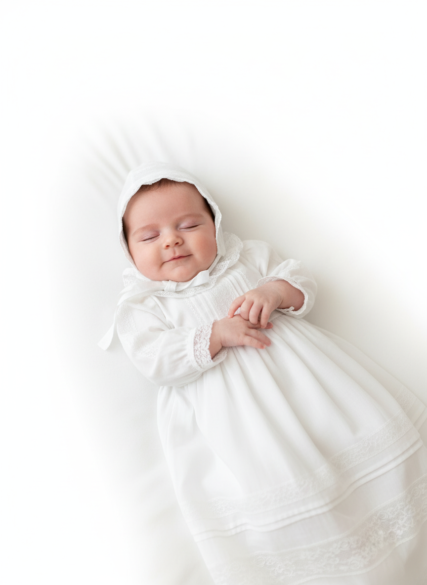 Chaque pièce est conçue avec une attention particulière au confort de bébé et au raffinement visuel, faisant de cet ensemble un choix intemporel pour une cérémonie inoubliable.