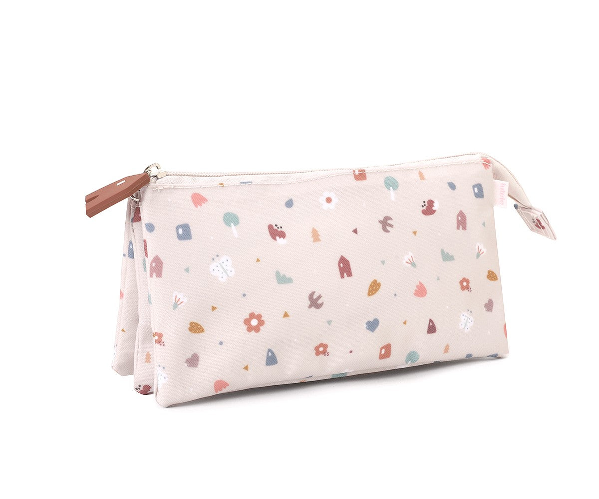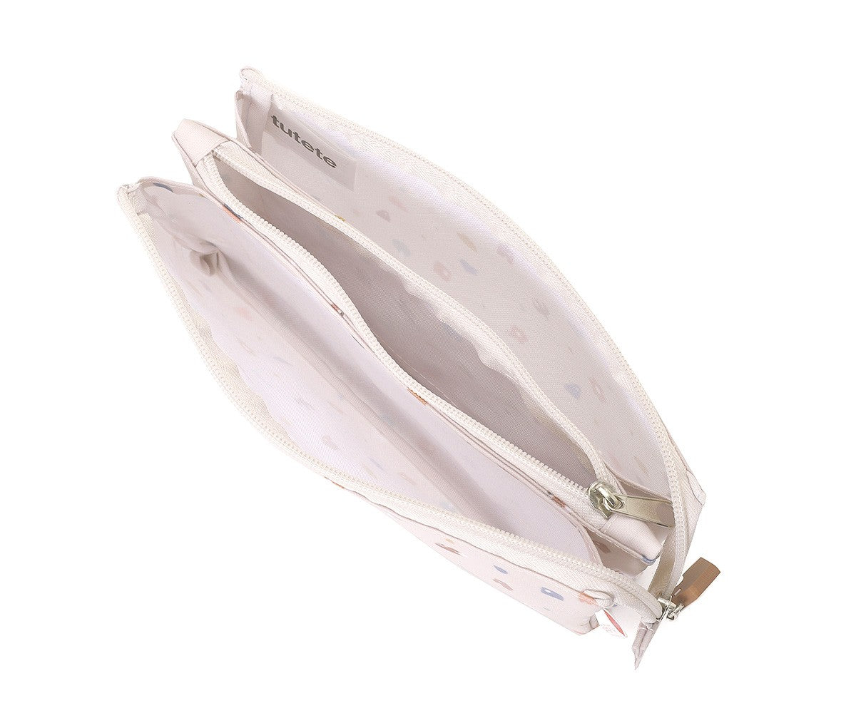 La trousse à crayons 3 compartiments Tutete pour enfant arbore un design coloré et amusant. Elle est dotée de trois compartiments pour ranger les fournitures scolaires et peut être personnalisée au nom de l'enfant, idéale pour l'école et pour favoriser l'autonomie.