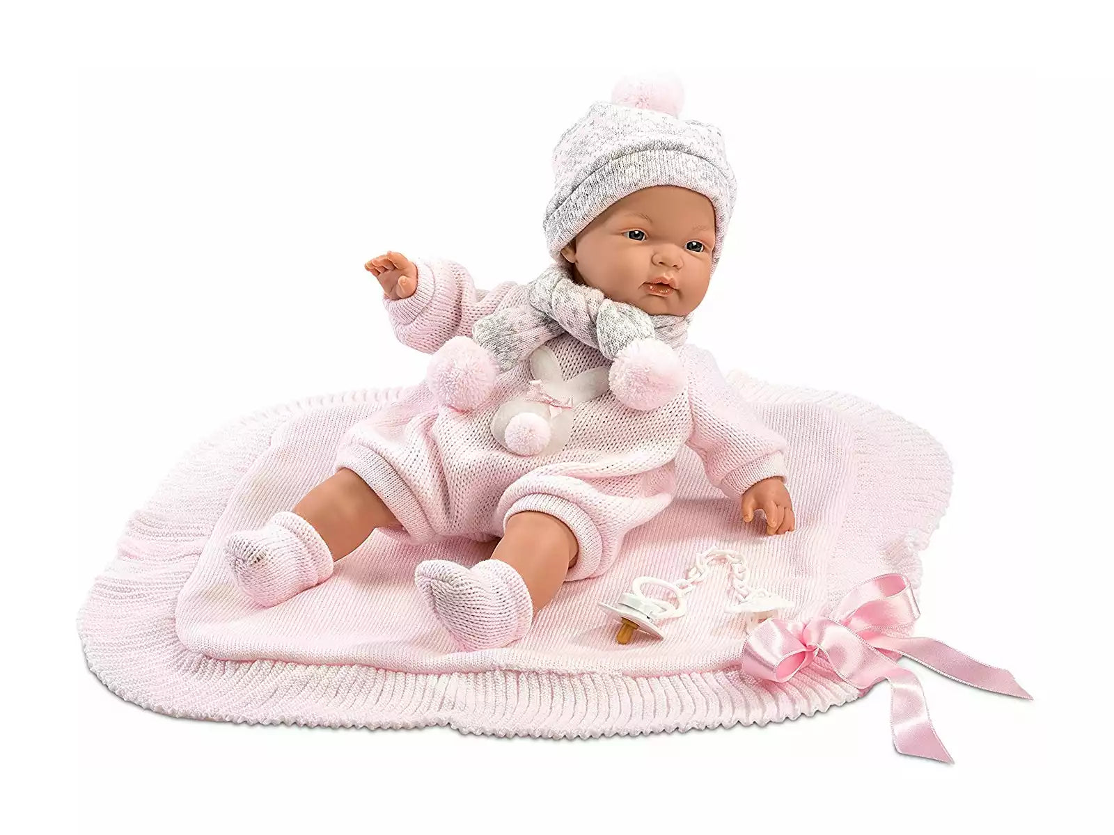 A boneca bebé com manta da Llorens é uma criação encantadora que transmite todo o carinho e delicadeza da infância. Com cerca de 38 cm, apresenta um rosto realista e expressivo, vestida em tons suaves de rosa e branco, com um adorável gorro tricotado e uma manta macia decorada com laços. Produzida com o cuidado, combina qualidade, beleza e emoção em cada pormenor.