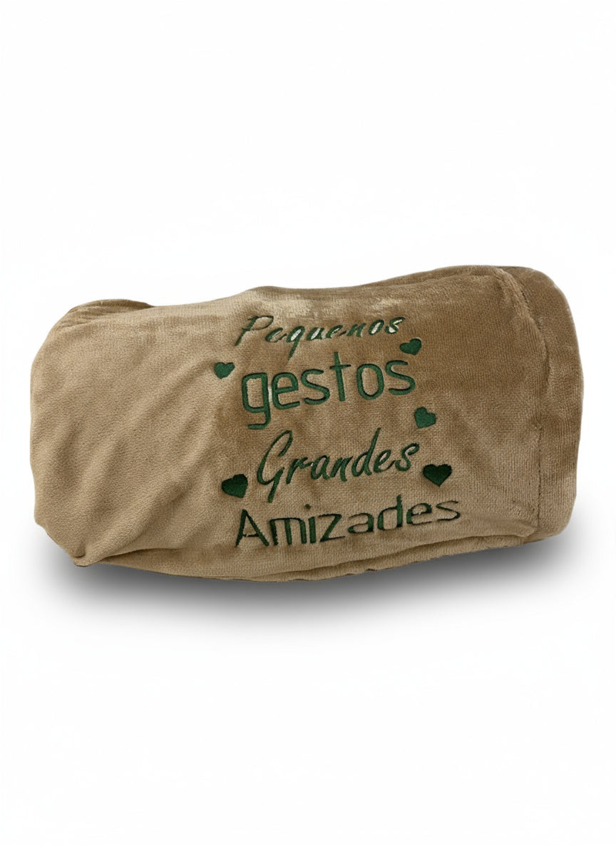 - Mensagem bordada "Pequenos gestos, Grandes Amizades" que torna cada peça especial
