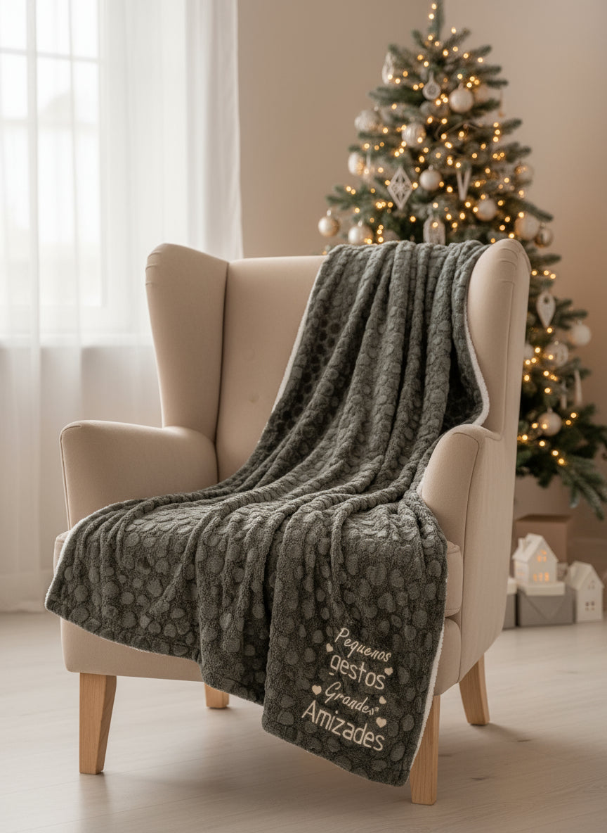Em duplo pêlo ultra macio, esta manta envolve com calor imediato e toque aveludado. O tom verde escuro acrescenta sofisticação ao sofá ou à cama, enquanto a mensagem carinhosa “Pequenos gestos, grandes amizades” recorda afetos de todos os dias. Leve, envolvente e com queda bonita, é perfeita para momentos de pausa, filmes em família e serões de inverno, mantendo o corpo quente sem perder elegância.