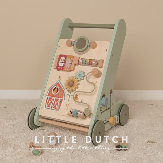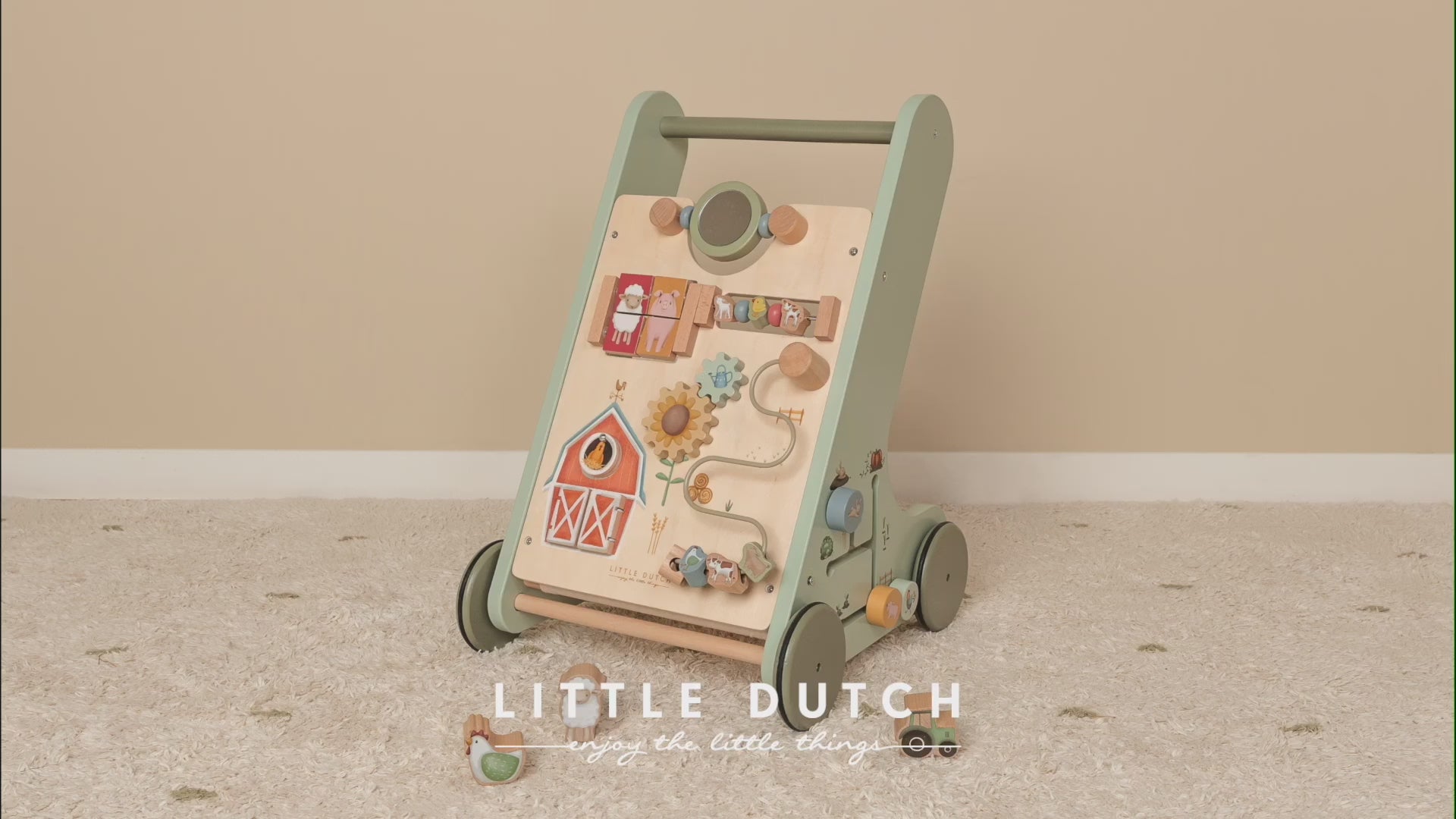 Marcher, jouer et apprendre ! Ce trotteur d'activités en bois propose une variété de défis pour développer la motricité de votre enfant. Stimulez votre bébé avec les nombreuses activités proposées sur ce trotteur joliment décoré. 8 activités sont à découvrir et à maîtriser, comme reconstituer les animaux de la ferme en faisant tourner les blocs. Robuste, ce trotteur convient aux enfants de 12 mois et plus, prêts à faire leurs premiers pas. Préparez-vous à recevoir des encouragements enthousiastes tandis que votre tout-petit se déplace avec aisance dans la maison grâce à ce trotteur. Les roues en caoutchouc protègent vos sols des rayures. Montage par un adulte requis.