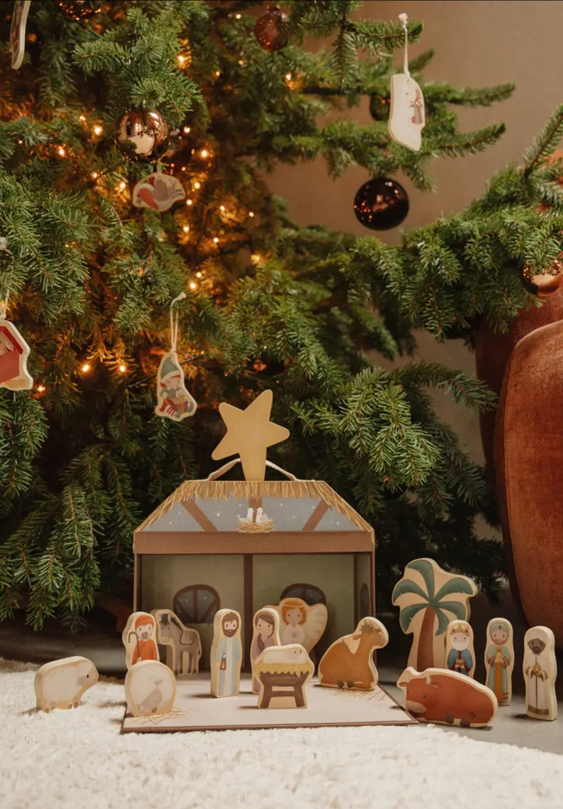 Douce nuit, sainte nuit ! 🌙✨ Avec cette crèche, votre enfant pourra s'amuser comme il l'entend. 🎄 Il retrouvera tous les personnages du conte traditionnel de Noël autour de la crèche de Jésus. ✨👶🏼✨ Préparez tout pour créer une scène remarquable à placer sous votre sapin de Noël jusqu'aux fêtes. 🎁🎄 L'ensemble est facile à ranger ou à emporter. La boîte est en carton robuste 📦 et les figurines sont en bois. 🪵😊