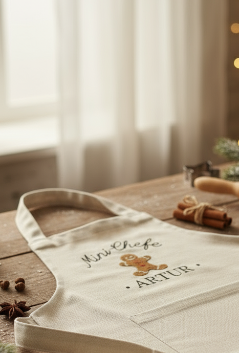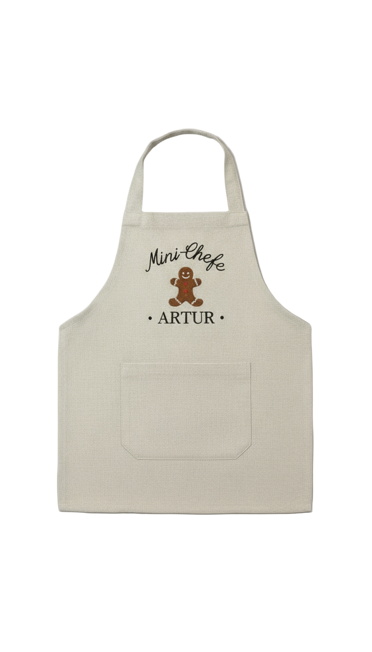 O Avental de Criança “Mini-Chefe” foi pensado para transformar cada momento na cozinha numa deliciosa aventura de imaginação. Criado com tecido resistente e confortável, garante proteção e liberdade de movimento, enquanto o seu design encantador reflete a ternura e o cuidado do Atelier Hábitos de Geração. O detalhe especial? Pode ser personalizado com o nome da criança, tornando-o uma peça única e cheia de significado.