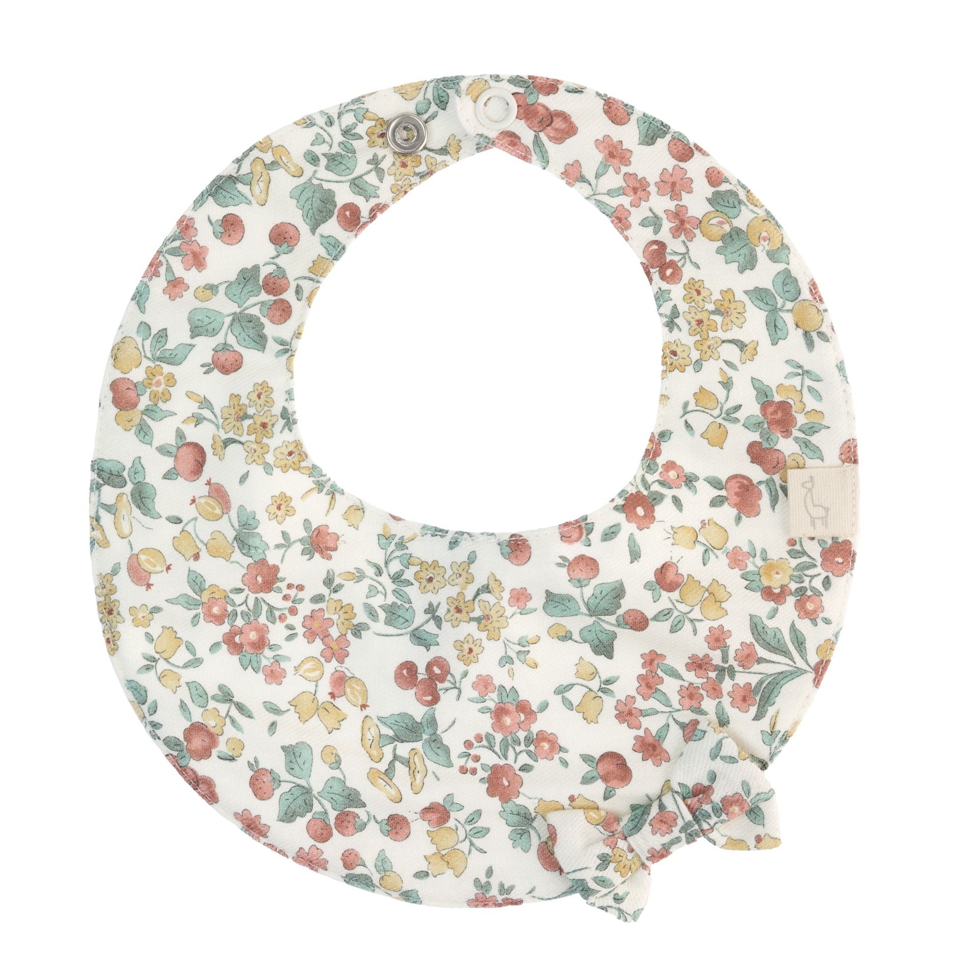 Babete em algodão macio, prático e cheio de charme para os momentos de refeição do bebé. Com padrão floral delicado em tons suaves e detalhe de laço no canto, alia funcionalidade e elegância no dia a dia.