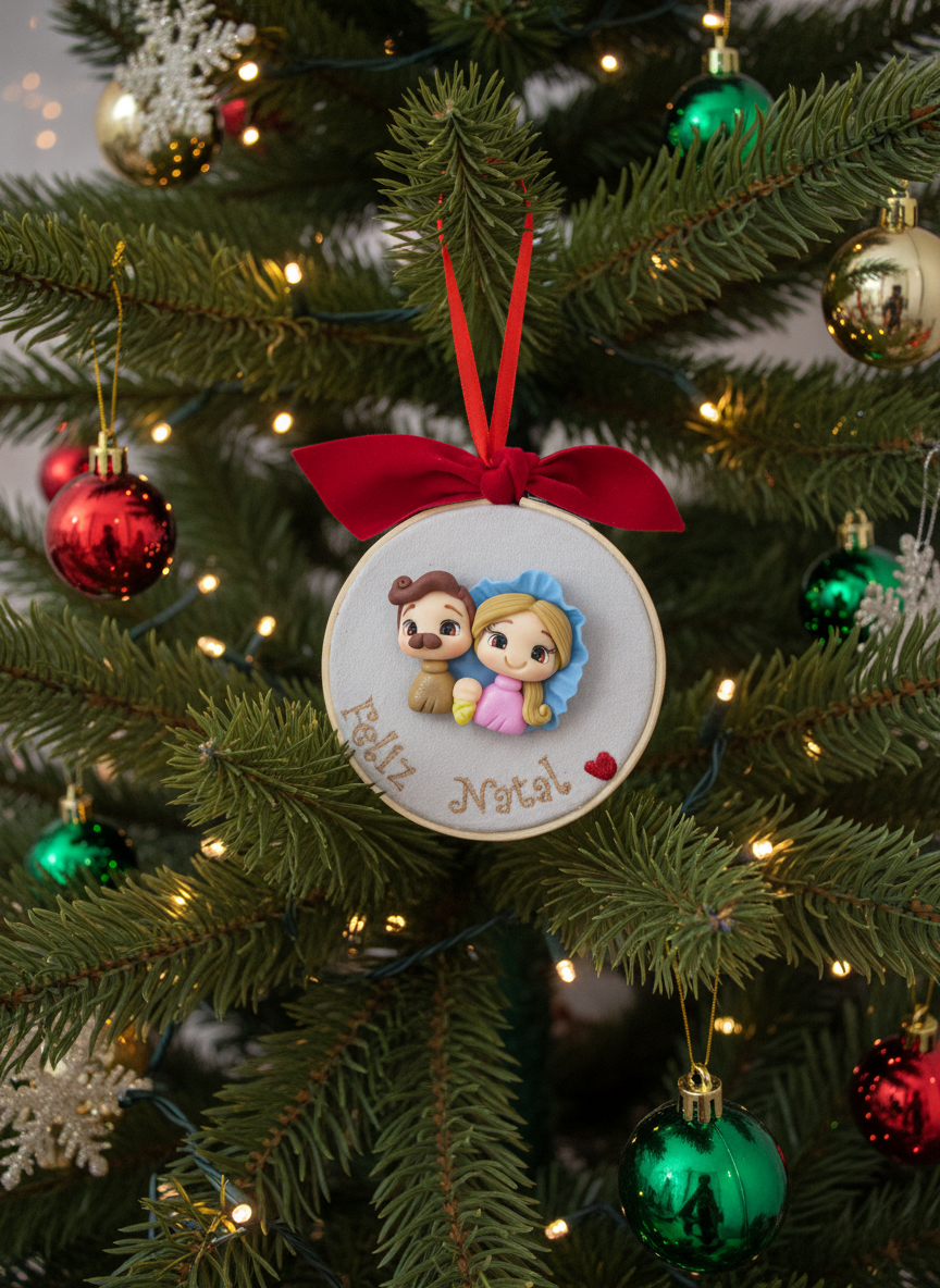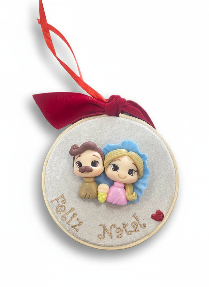 Este delicado bastidor D10 em madeira apresenta um presépio em biscuit modelado à mão, com figuras de traço doce e expressivo que encantam miúdos e graúdos. Sobre tecido suave em tom claro surge a mensagem bordada “Feliz Natal”, rematada por um pequeno coração vermelho. A fita em veludo vermelho, pronta a pendurar, acrescenta um toque acolhedor e festivo, transformando esta peça num detalhe especial para celebrar o nascimento do Menino em ambiente de carinho.
