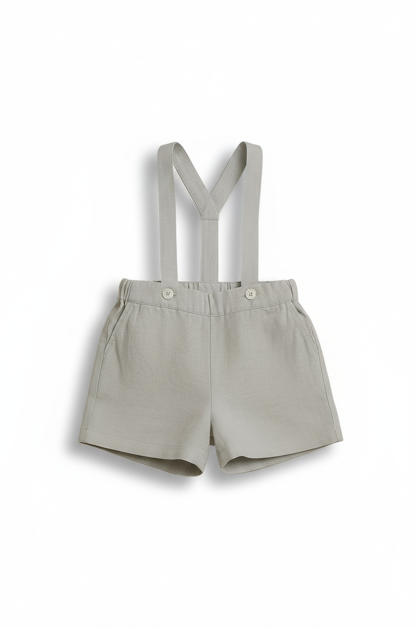 Confeccionado em tecido natural leve e respirável, este calção com alças cruzadas combina tradição e conforto num cair impecável. O corte clássico com pregas suaves confere elegância, enquanto a pala elástica nas costas assegura ajuste perfeito e liberdade de movimentos. Os botões frontais acrescentam um toque refinado e intemporal, revelando o cuidado artesanal do Atelier Hábitos de Geração. Suave ao toque, acompanha o bebé durante todo o dia com bem-estar e delicadeza, resultando em coordenados harmoniosos e cheios de doçura.