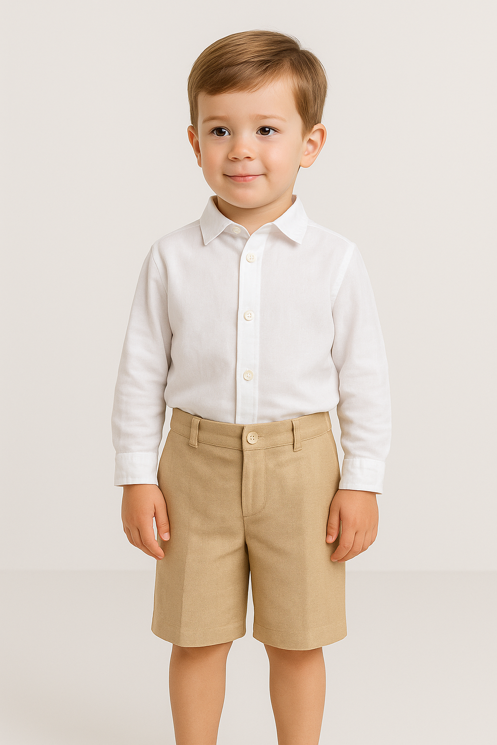 Disponíveis dos 1 aos 8 anos estes calções linho infantil encaixam perfeitamente em cerimónias mais formais sem perder a ideia de diversão típica da infância. A linha HG distingue-se pela moda infantil cerimónia que combina tradição artesanal com padrões atuais. Cada fio é escolhido com rigor e sob práticas de sustentabilidade para um guarda-roupa de longa duração e impacto mínimo no planeta. A escolha certa para quem valoriza roupa de batizado e prendas únicas com história.