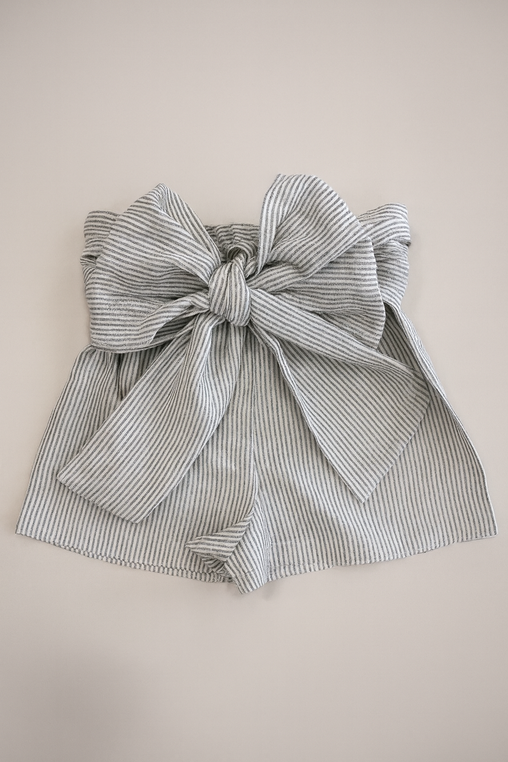 Calções em tecido leve com padrão a riscas finas, perfeitos para um look fresco e elegante.