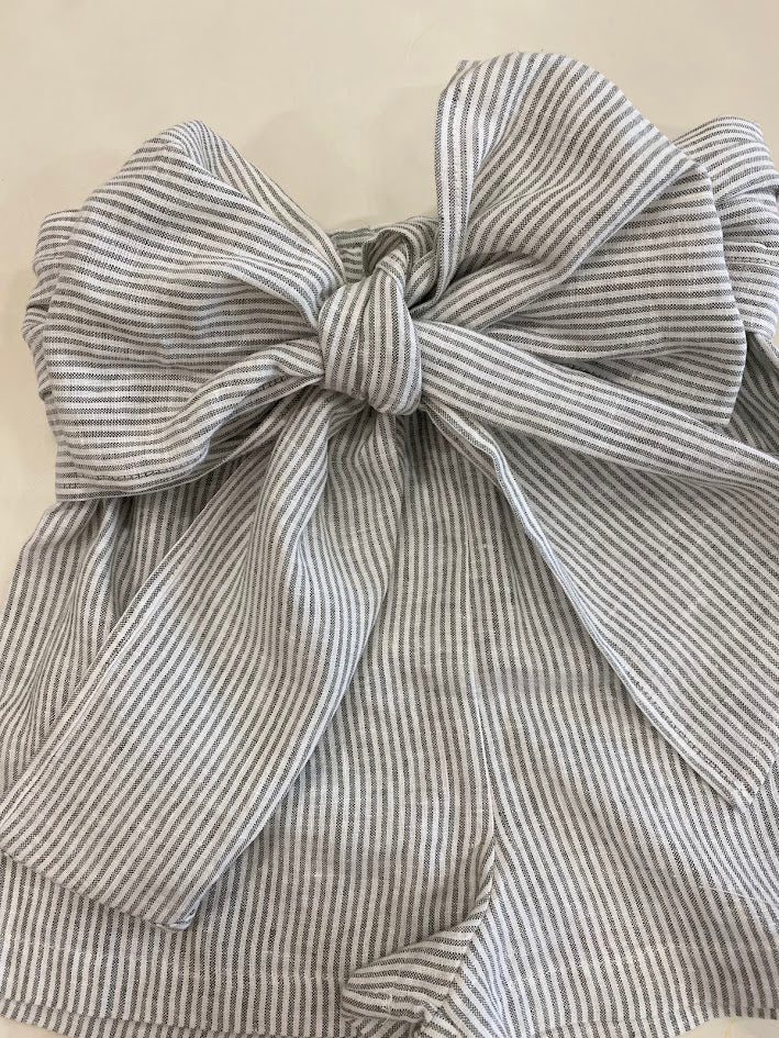 Cintura alta com laço maxi que traz charme e sofisticação;