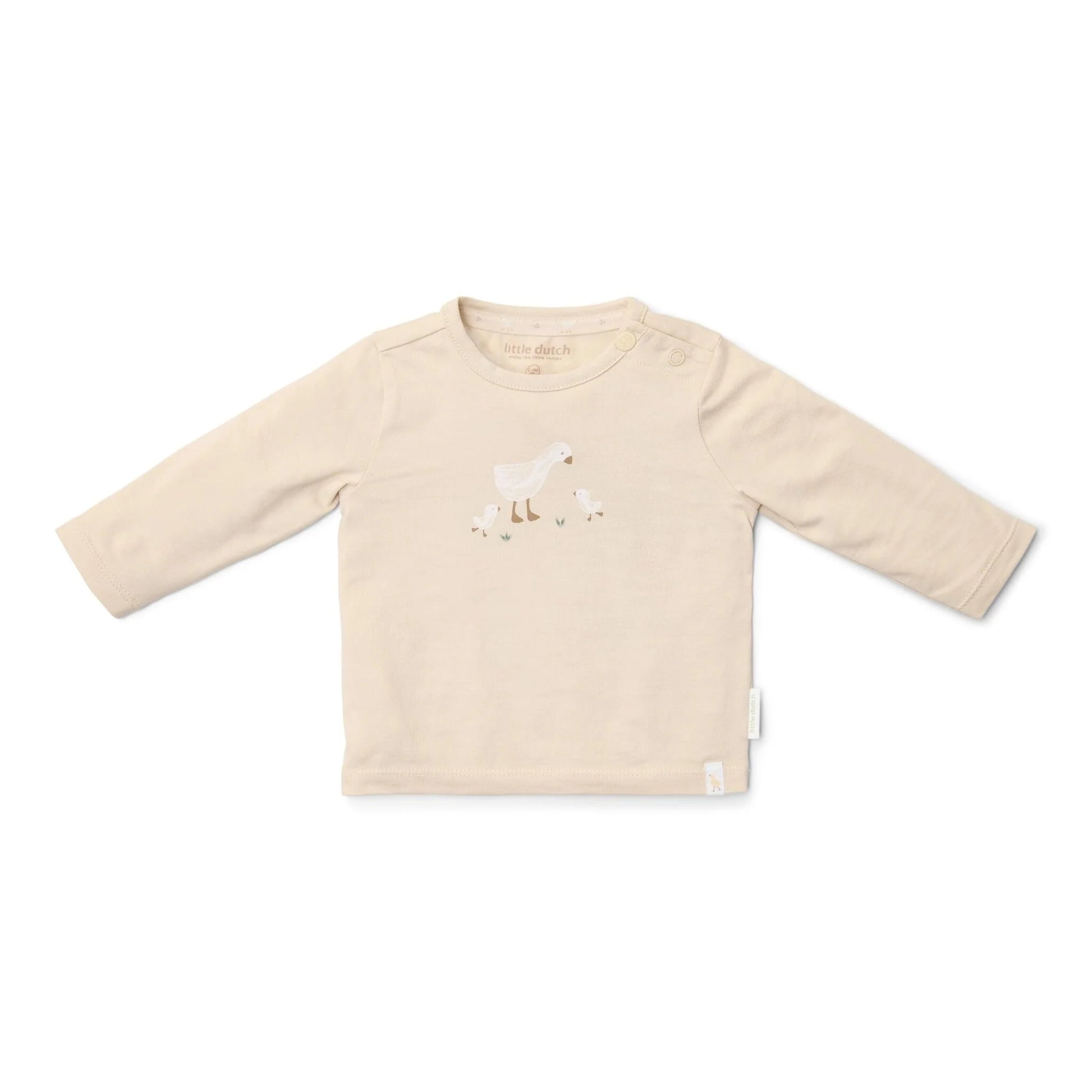 A camisola de manga comprida da Little Dutch é a escolha perfeita para manter o bebé confortável e elegante em qualquer ocasião. Em tom neutro bege, apresenta um delicado bordado de ganso com pintainhos, que transmite ternura e simplicidade.