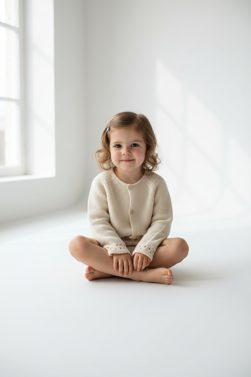 Um casaco delicado que envolve a infância em ternura e transforma cada momento num gesto de amor.