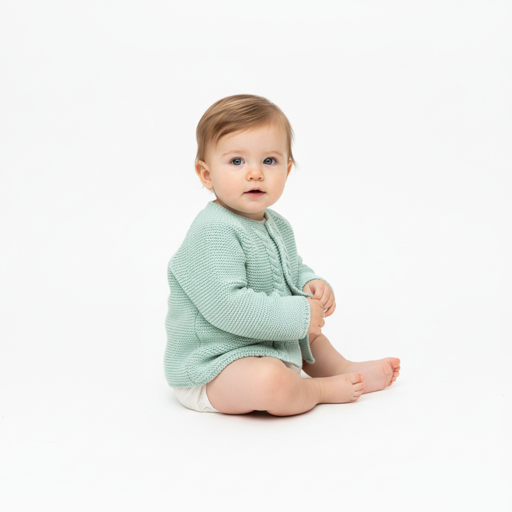 Um casaco delicado que envolve a infância em suavidade e guarda os primeiros momentos com ternura.
