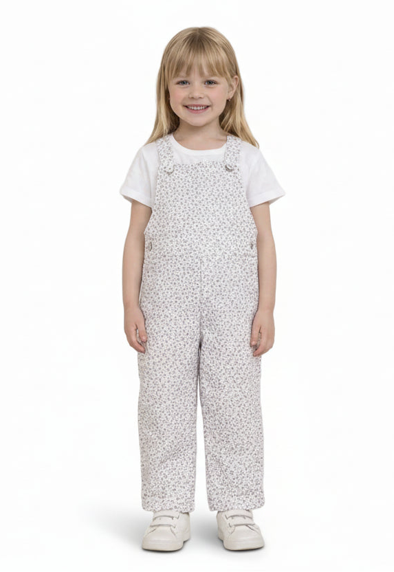 A Jardineira Branca c/ Flores HG é um sopro de suavidade, com um padrão floral miudinho que traz romance e leveza ao look. Em tecido de toque macio e confortável, acompanha cada movimento com naturalidade, sem perder a elegância. As alças ajustáveis com botões garantem um cair perfeito, e o corte prático torna-a ideal para vestir com facilidade. Uma peça doce e intemporal, pensada para guardar memórias bonitas. Disponível em tamanhos de bebé e criança, em fundo branco com estampado floral. Alças ajustáveis e botões laterais para maior conforto ao vestir. Fica encantadora com camisas, bodies ou malhas em tons pérola e nude.
