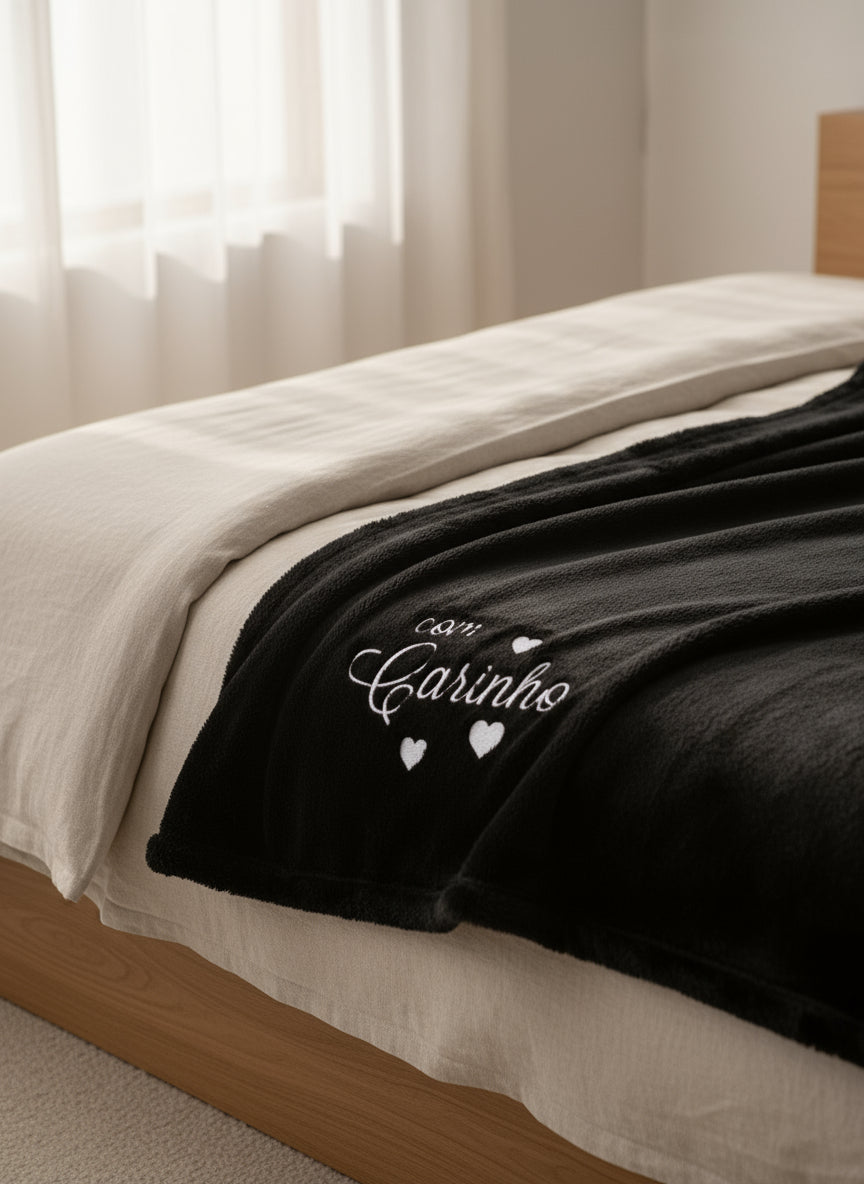 Manta Duplo Pêlo Preto: "Com Carinho..."