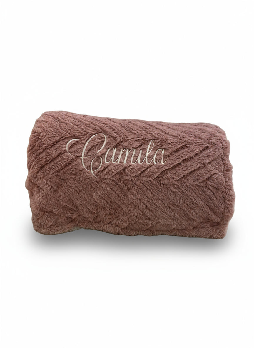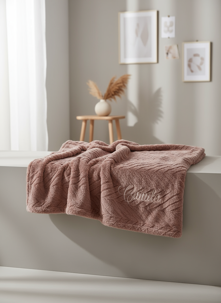 Em duplo pêlo de toque aveludado e fofinho, esta manta envolve com conforto imediato e brilho subtil. O tom rosa velho acrescenta sofisticação, enquanto o bordado com o nome “Camila” torna a peça única e carregada de sentimento. Leve, calorosa e respirável, é gentil para a pele e mantém-se impecável uso após uso — um essencial que junta elegância, maciez e emoção.