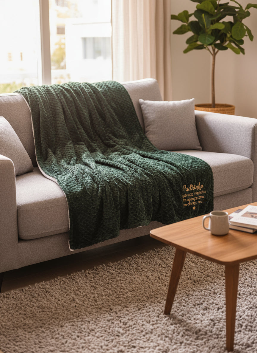 Manta Duplo Pêlo Verde Escuro: "Padrinho, Que esta..."