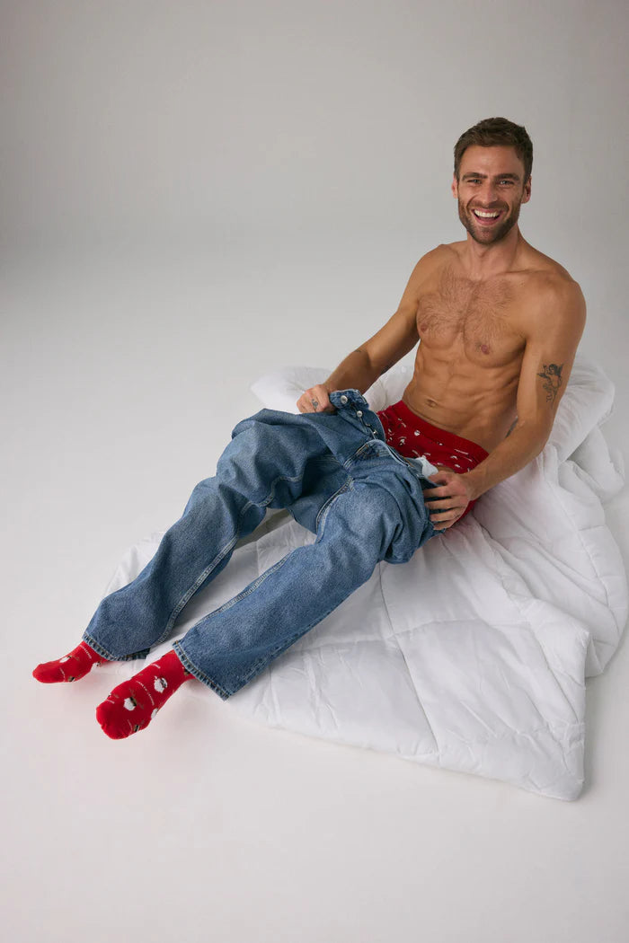 O pack boxer e peúga foi criado para celebrar o Natal com descontração e charme. Confeccionado em algodão macio e elástico, proporciona máximo conforto e respirabilidade, adaptando-se perfeitamente ao corpo. O design divertido com motivos natalícios transmite o espírito festivo com um toque de humor e elegância. As meias coordenadas, igualmente suaves e confortáveis, completam o conjunto com harmonia e originalidade — ideal para oferecer ou usar nas celebrações de fim de ano.