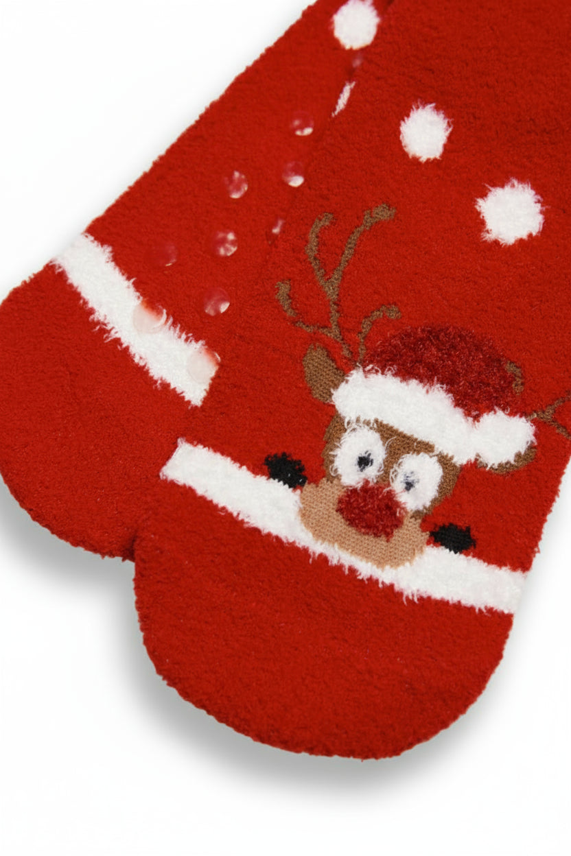 As meias antiderrapantes de Natal trazem o espírito natalício para os dias mais frios com muito conforto e diversão. Confeccionadas em tecido macio e quente, apresentam motivos natalícios encantadores e uma sola de silicone antiderrapante, que garante segurança e estabilidade em qualquer superfície. O manguito anti-pressão assegura uma fixação confortável, sem apertar, ideal para relaxar, brincar ou viver a magia do Natal em família.