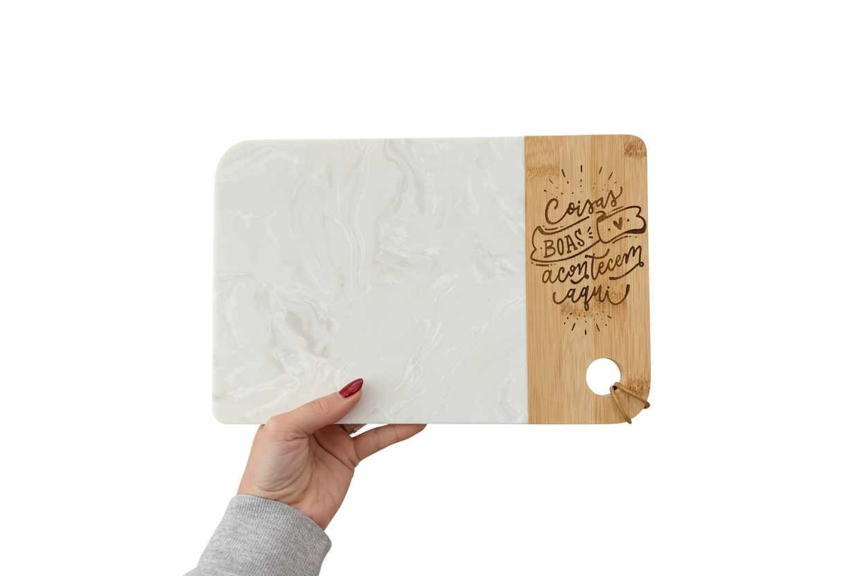 A Tábua de Cozinha HG é aquele essencial bonito e prático que eleva o quotidiano. Com um acabamento cuidado e presença intemporal, torna-se perfeita para servir, preparar e decorar com simplicidade elegante. O grande destaque está na gravação a laser, feita pela HG, que dá um toque personalizado e sofisticado, ideal para oferecer com significado. Uma peça pensada para durar, transformar momentos simples em rituais e trazer charme à sua cozinha. Tábua de cozinha com gravação a laser HG. Ideal para uso diário e para oferecer como lembrança original. Combina com cozinhas clássicas e contemporâneas, acrescentando um toque especial à bancada ou à mesa.