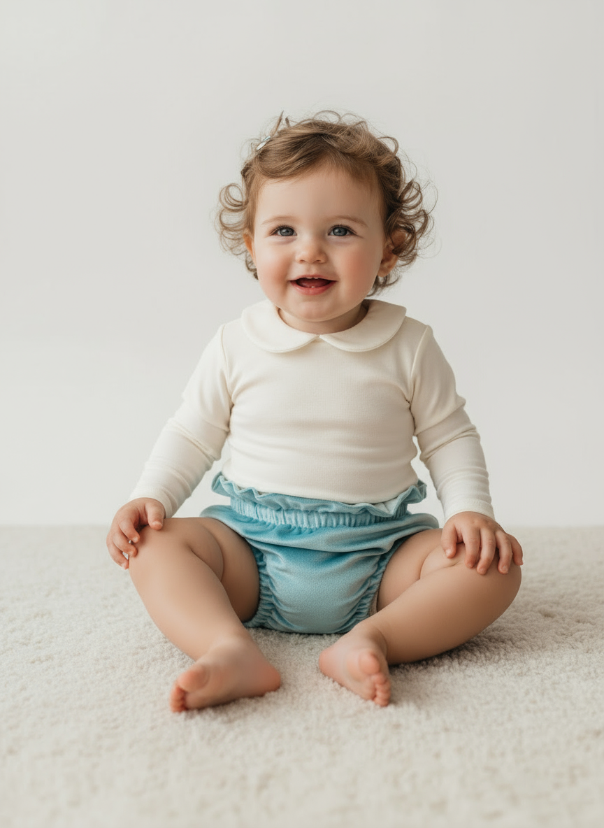 O tapa-fraldas HG com folho é uma peça encantadora que combina conforto e elegância com a assinatura delicada do Atelier Hábitos de Geração. Confeccionado em veludo macio e suave ao toque, envolve o bebé com ternura, proporcionando bem-estar durante todo o dia. O folho delicado na cintura acrescenta um toque romântico e sofisticado, transformando esta peça num essencial cheio de graça. Um clássico intemporal que se adapta a qualquer coordenado, das cerimónias aos dias mais tranquilos.